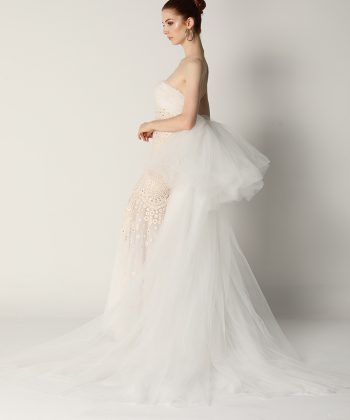 Japanese anemone is a cup shaped flower that comes in just two shades, pink and white. It is believed that anemone sprang from the tears of Aphrodite as she mourned the death of Adonis. Anemone carries positive meaning. It is believed to protect against evil and bad luck. Japanese anemone dress showing the beauty of anemone flower, the perfect shape and fluffy big bow and tail gives the feeling of clouds in the haven